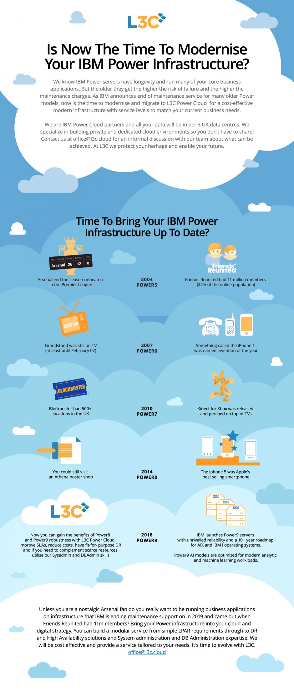Are you still running core infrastructure from the days of Friend’s Reunited, Arsenal going unbeaten and Grandstand? IBM Power clearly has longevity but the risks and costs of support increase significantly over time. If you are running core business applications on ageing AIX or IBM i infrastructures or are struggling with system administration or DB administration support then our cloud service can provide a cost effective solution on a modern IBM Power platform.